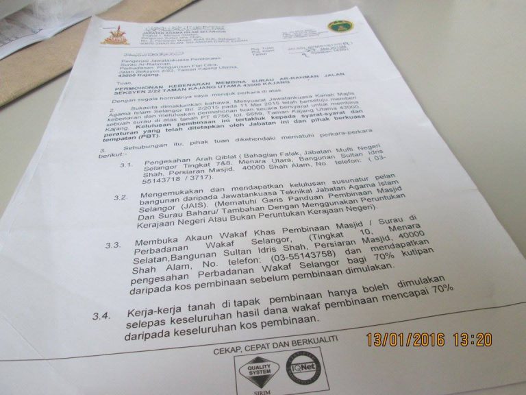 – Menyediakan kelengkapan ibadah seperti mihrab, karpet dan pembesar suara